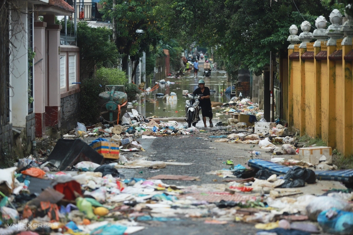 Phố phường ngập rác sau lũ lịch sử ở Huế