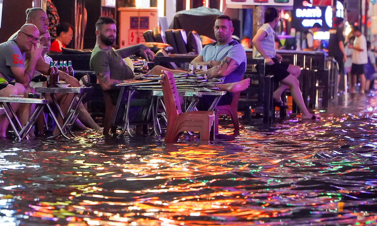 Mưa khoảng 30 phút, trùng với triều cường đạt đỉnh lúc 17-19h, hệ thống cống khu vực phố Bùi Viện (quận 1 cũ, nay là phường Bến Thành) quá tải. Nước dâng lênh láng, nhiều xe chết máy, người dân bì bõm lội bộ. Nơi đây tập trung nhiều khách nước ngoài, nhất là dịp cuối tuần. Hoạt động vui chơi diễn ra suốt đêm.